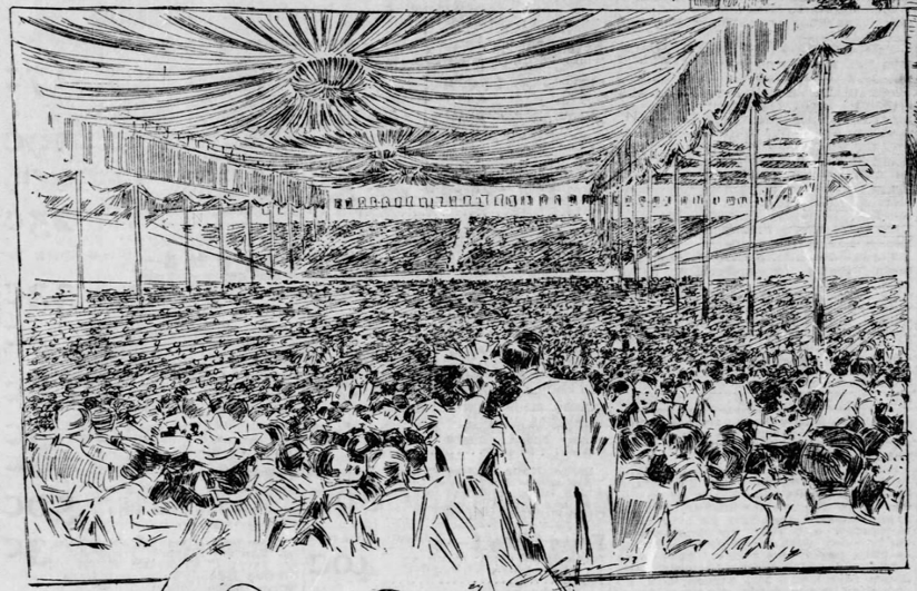 Meanwhile, the building’s vulnerability to fire grew worrisome. “Convention Hall Called Fire Trap” read a headline only a week after the Saengerfest. A prominent insurance executive suggested that letting the building remain standing would be “a menace to lives and property,” the equivalent of storing a powder kegs and dynamite in the basement of City Hall. What could possibly go wrong?